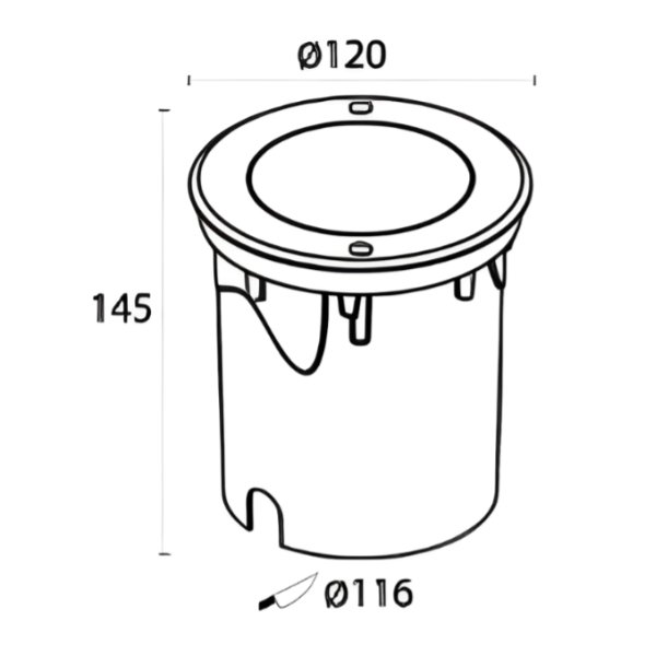 Diameter: 120mm; Height: 145mm; Cut Out: 116mm