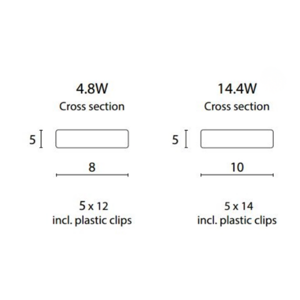 | Wattage | 14.4 w/m, 4.8 w/m |