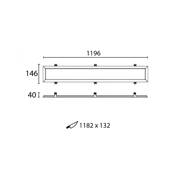 Height: 40mm ; Length: 1196mm ; Width: 146mm; Cutout: 1182 x 132mm