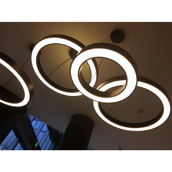Metallic Diecast Aluminium Trim and Body, Acrylic Diffuser, Wire Suspension Cables