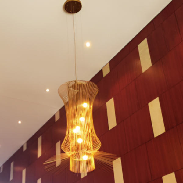 Architectural Custom Designed Vertical Pendant with Six Point Spiralled LED Lamps