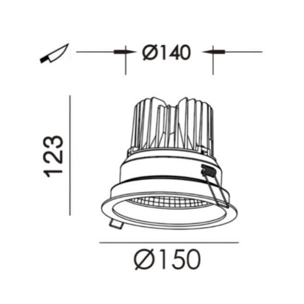 Diameter: 150mm; Height: 123mm; Cut Out: 140mm