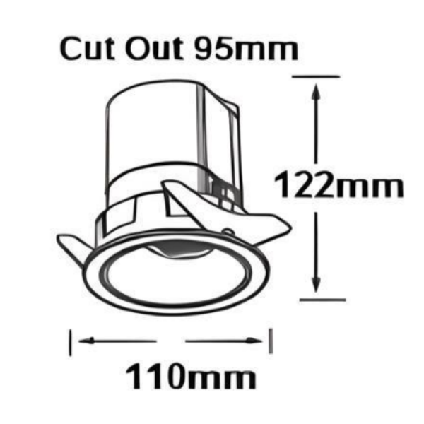 Diameter: 110mm; Height: 122mm; Cut Out: 95mm