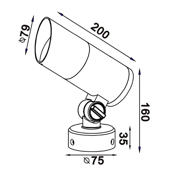 Head Diameter: 79mm; Head Height: 200mm; Base Diameter: 75mm