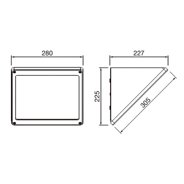 Diameter: 280mm; Height: 225mm; Projection: 227mm