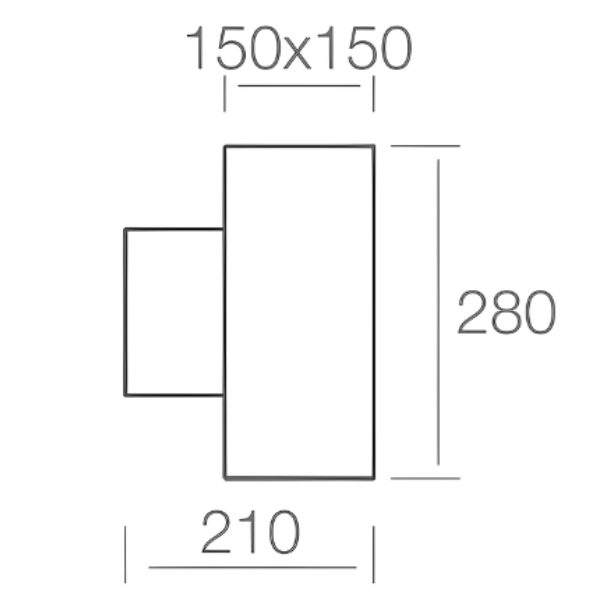 Diameter: 150x150mm; Height: 280mm; Projection: 210mm