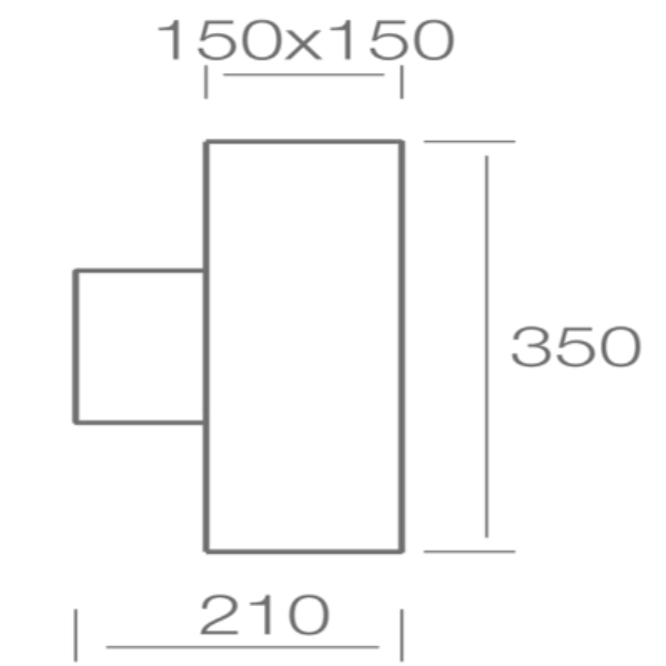 Diameter: 150x150mm; Height: 280mm; Projection: 210mm