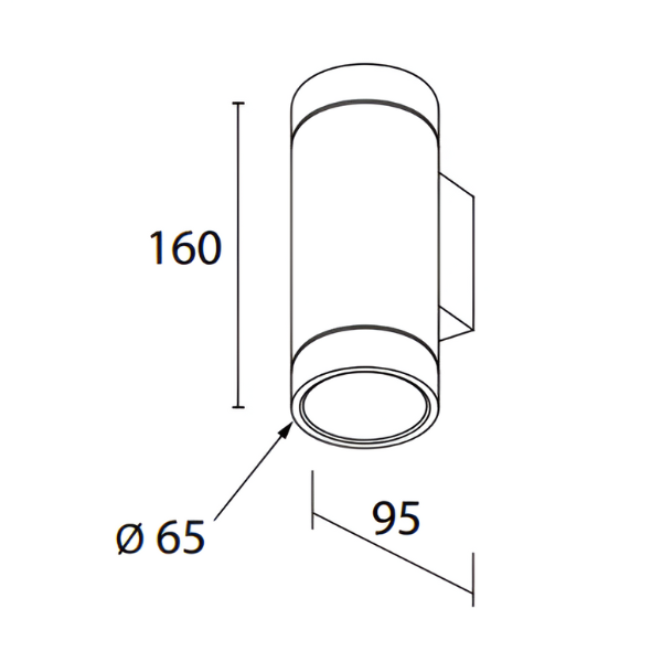Diameter: 65mm; Height: 140mm; Projection: 100mm
