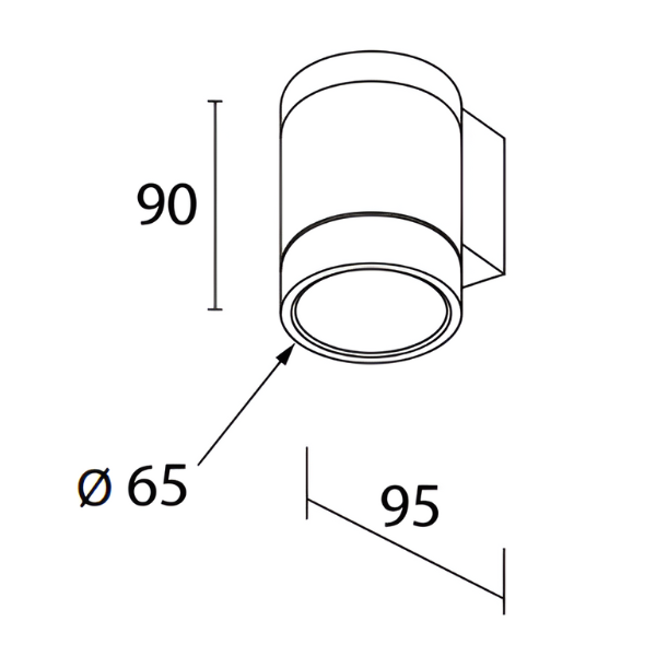 Diameter: 65mm; Height: 90mm; Projection: 95mm